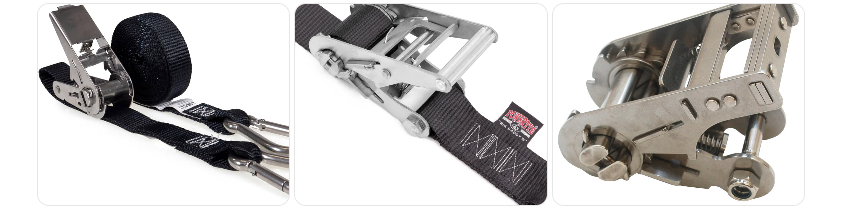 Load capacity depends on strap width, steel grade, and ratchet design. Industrial models commonly range from 1 ton to over 10 tons breaking strength.